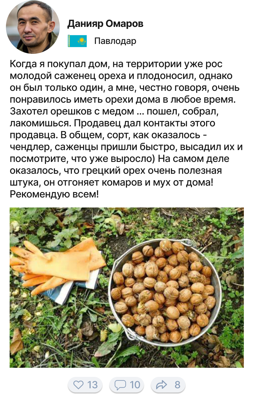 Ореховые сады наших клиентов — выращивай на продажу или для всей семьи. Минимум площади — максимум урожая!